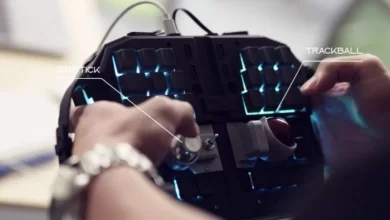We see different keyboard designs, but the Grab Shell has a ambidextrous flap system that folds back. Technology takes shape…