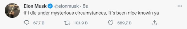Elon Musk, who became the target of the Russian forces because of his support for Ukraine, also raised the social media with the message “It was nice to know you if I die in mysterious circumstances” shared on his Twitter account. midnight.