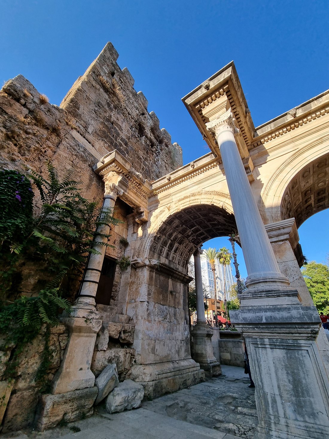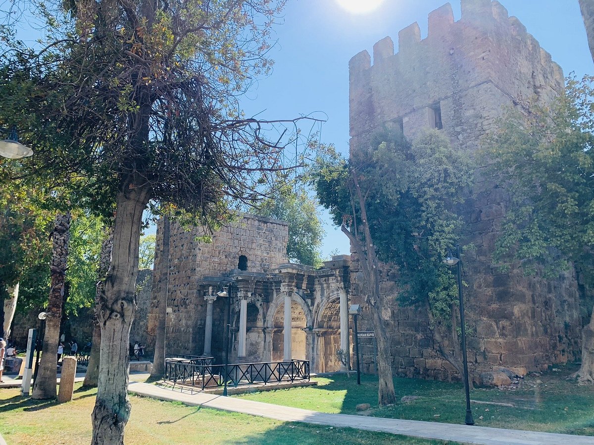 Hadrianus Gate or Uckapilar is one of the monumental gates on the city wall surrounding the city in Antalya. Also called marble door. It was addressed to the Roman Emperor Hadrianus during his visit to Antalya in 130 AD. Uckapilar is one of the best preserved historical buildings in Antalya. This building, which is a Roman work, was built in 130 AD in the name of the Roman Emperor Hadrian.