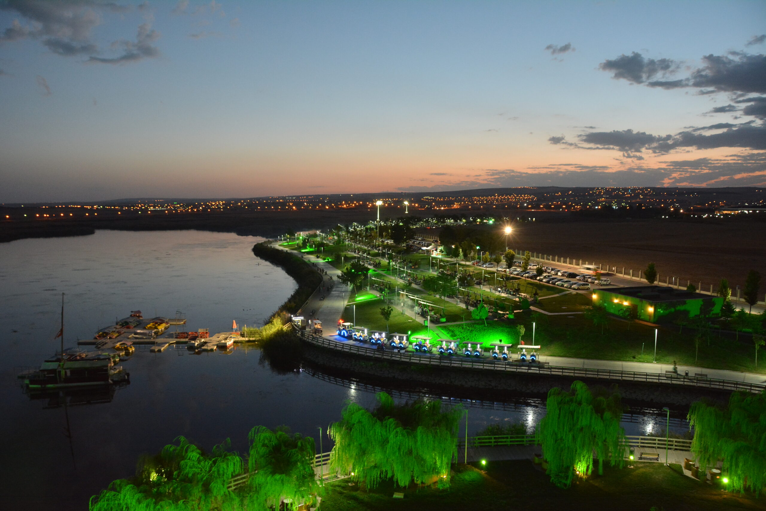 A 4-kilometer wooden platform beach walkway was built in the area on the coastline of Lake Mogan’s Haymana road, and 3 viewing terraces and 400 benches were placed on the road. In the evenings, the surface of the lake is illuminated with a laser system mounted on the top of the lighthouse. On a hill overlooking Mogan Lake, there is an amphitheater for 3000 people and a modern wedding hall for 1000 people, which can be used by the locals and all the people of Capital.
