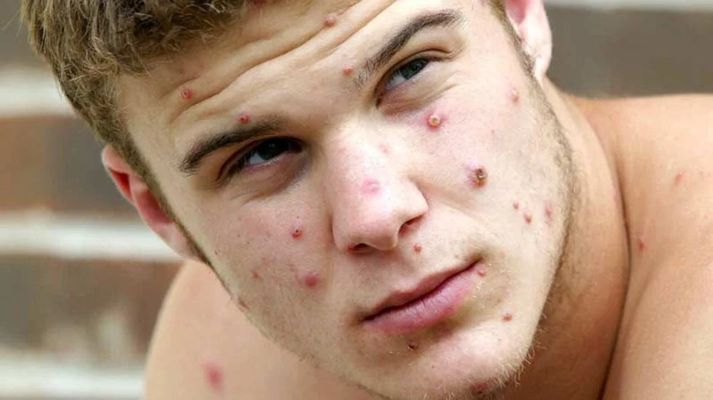 The disease begins with high fever, headache and itching. It is accompanied by sweating, back and muscle pain, and weakness. The rash usually first appears on the face and then spreads to the body.